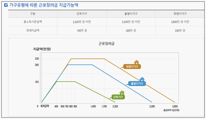 ▶ 근로장려금 신청자격 요건과 총 급여액 등에 따른 나의 근로장려금 지급액을 알아보세요!