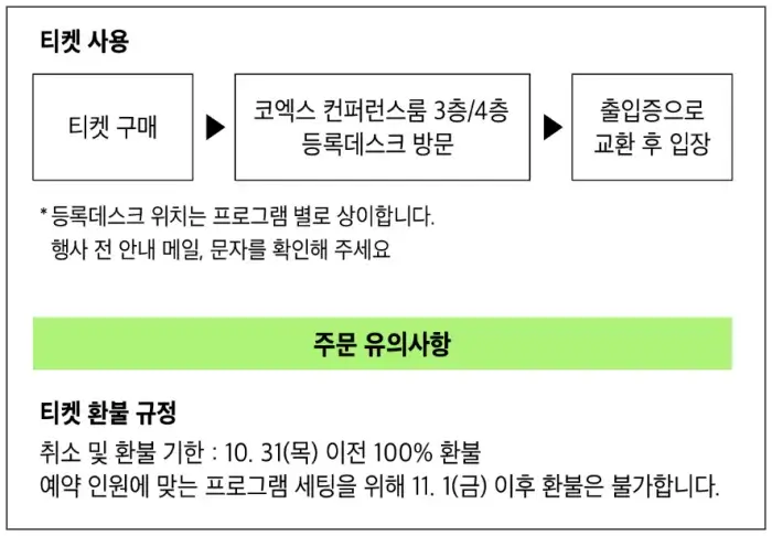 - 11월 6일(수) ~ 8일(금) → 10:00 ~ 18:00 (입장마감 17:30)