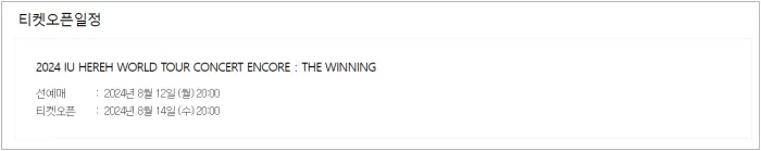 | 공연명 | 2024 IU HEREH WORLD TOUR CONCERT ENCORE : THE WINNING |