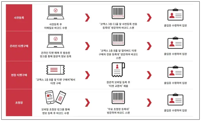 서울카페쇼 티켓구매 방식에 따른 입장절차는 아래이미지를 참고하세요.